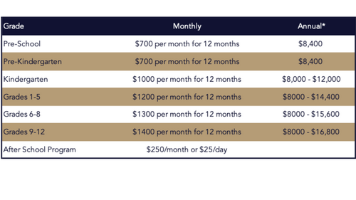 *The lowest annual tuition figure for each grade level represents the base rate for those families who qualify for the indexed tuition program. This base rate may be payable through the Florida Family Empowerment Scholarship.